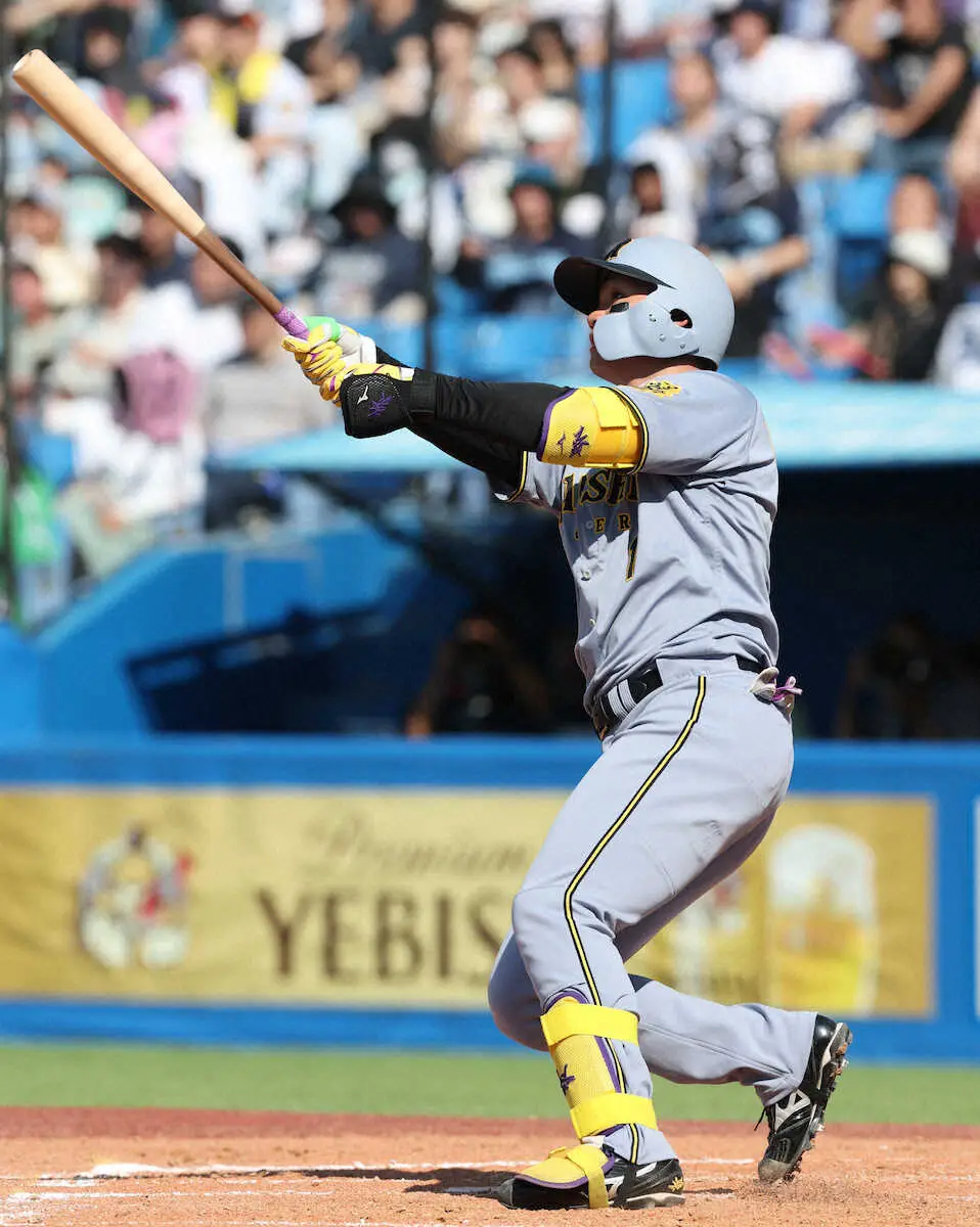 今季12本塁打中、9本に「先制」「決勝」などの肩書が付く。スラッガーの責務を果たし、価値あるアーチを量産中。一方、今季のヤクルト戦は5勝4敗で、貯金は1。最下位を相手に、今カード勝ち越しは必須。何度でも見たい、ツバメキラーの“肩書弾”。「明日(29日)勝って甲子園に戻りたい」。燃える男に二言はない。(八木 勇磨)