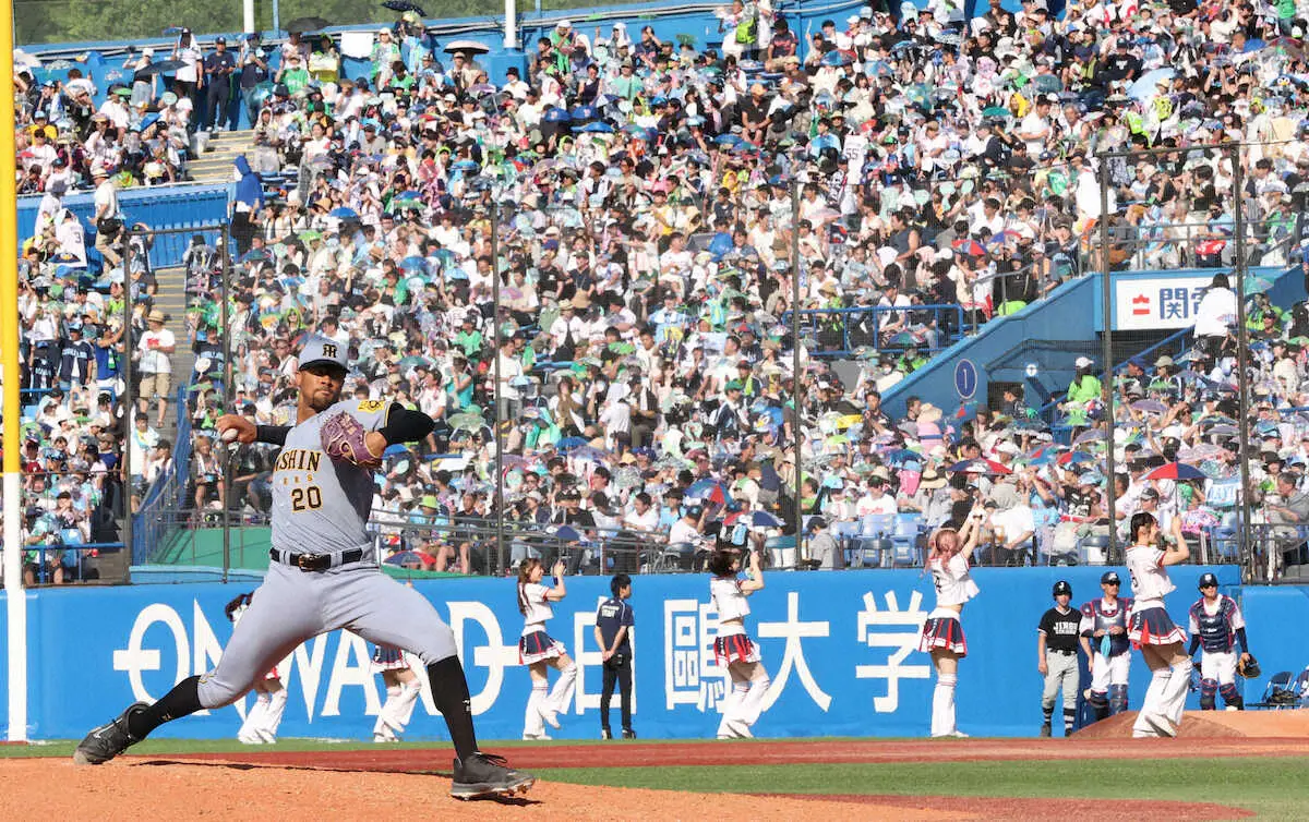 42度超えまで上昇した灼熱(しゃくねつ)のグラウンドで102球の熱投を演じた。阪神・デュプランティエは自身初の連勝で4勝目。ヤクルト戦は6回無失点に抑えた前回5月3日から13イニング連続無失点だ。新たなツバメキラーが誕生した。