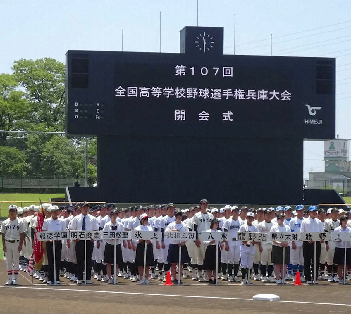 第107回全国高校野球選手権大会(8月5日から18日間、甲子園)の出場校を決める兵庫大会の開会式が29日、姫路市のウインク姫路球場で行われた。