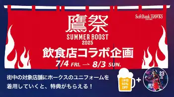 ソフトバンクが「鷹祭 SUMMER BOOST」で福岡の飲食店とコラボ ユニホーム着用で特典提供