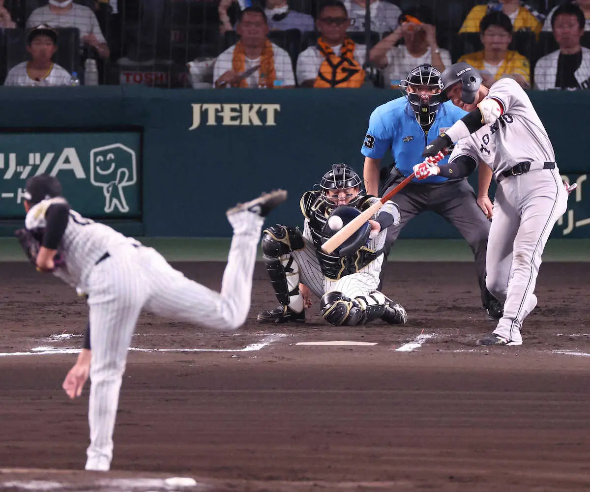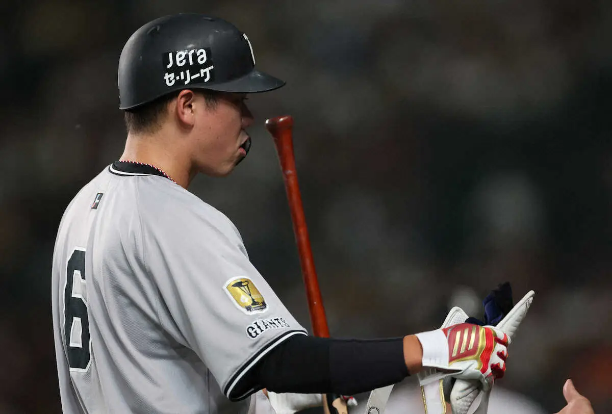 <神・巨>6回、適時二塁打を放つ坂本(投手・湯浅)(撮影・中辻 颯太)