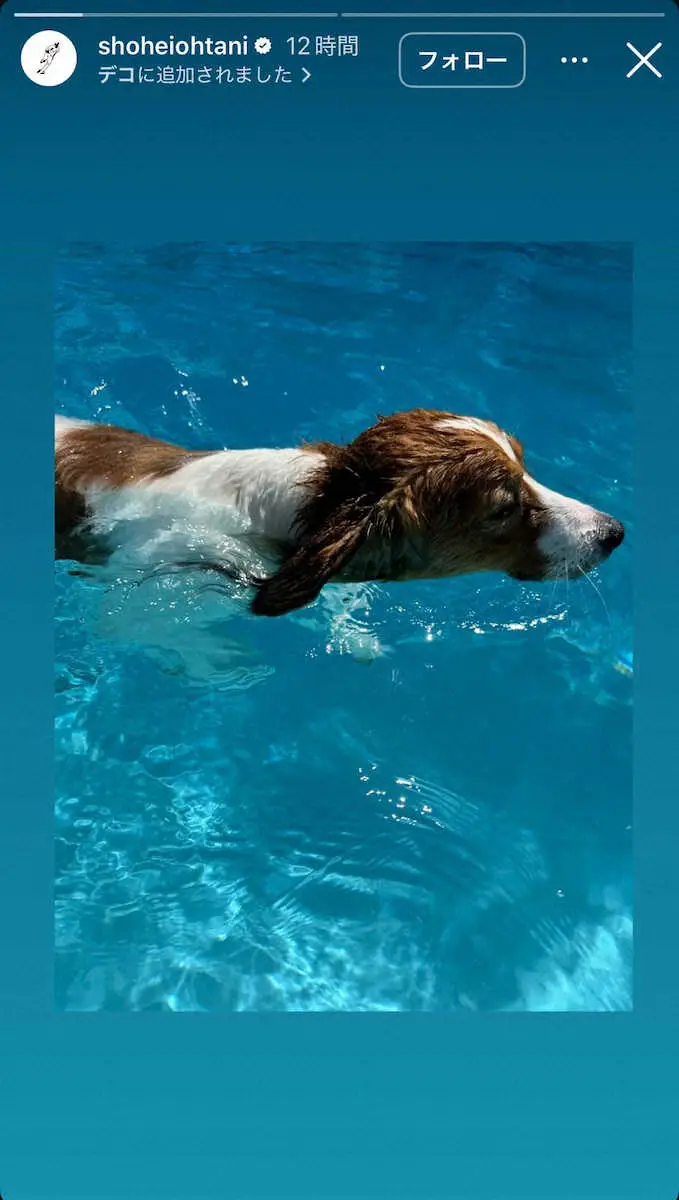 ドジャース・大谷 デコピンとリラックス プールで気持ち良さそうに泳ぐ愛犬をインスタに投稿