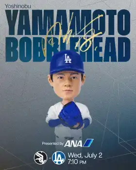 ≪3日はボブルヘッド人形配布≫2日(日本時間3日)のホワイトソックス戦は山本のボブルヘッド人形が来場者に配布される。球団公式SNSはPR動画を公開し、山本が自身のボブルヘッドに「ヤリ拾うの手伝ってくれるの?くれないの?」と尋ねる場面などがアップされ話題を呼んだ。ボブルヘッドデーは対象選手の家族らが始球式を行うのが恒例。昨年は大谷の愛犬デコピンが始球式に登場したこともあり、報道陣から「自身の愛犬が登場するのか?」と問われたが「しないです」と笑顔でかわしていた。