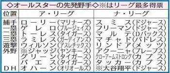 MLB オールスター戦ファン投票の最終結果を発表 先発18人が決定