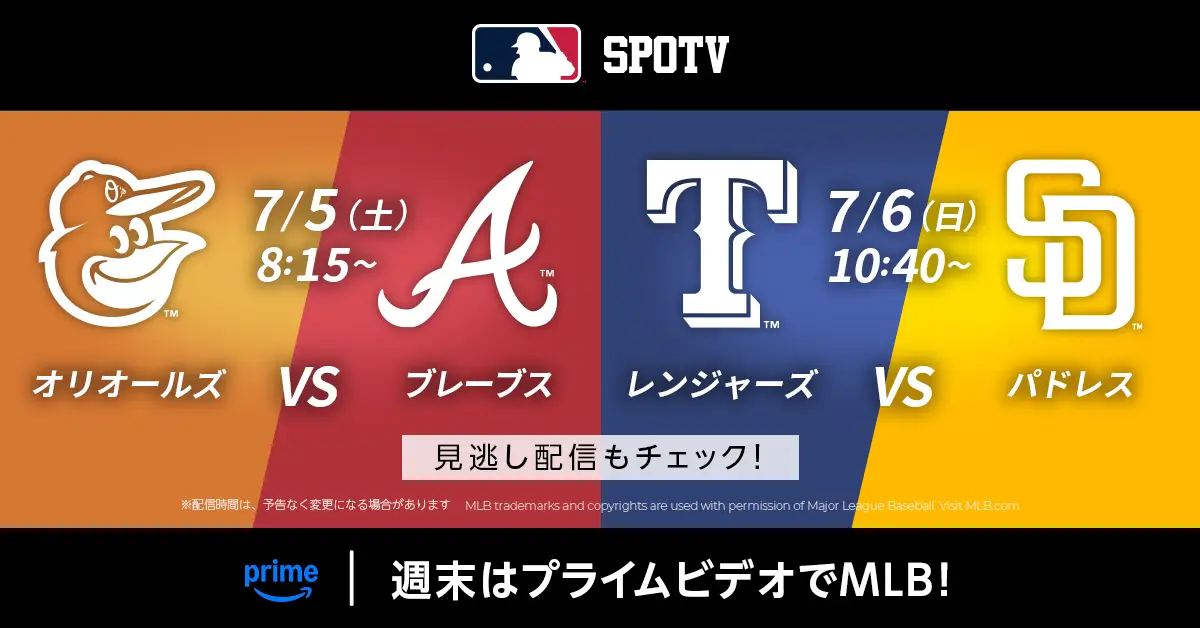 プライムビデオのSPOTVで週末MLB観戦 プライム会員は追加料金不要