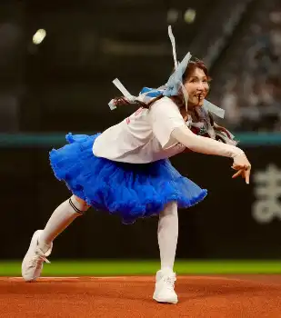試合前にはファーストピッチを務めた。日本ハムのユニホームと青色のミニスカ姿で登場し「いろんな方に恥をかかせないように頑張ります」と緊張気味にマウンドへ。ダイナミックなフォームからの投球はワンバウンドとなったが「めっちゃ緊張しました」と笑顔を見せた。