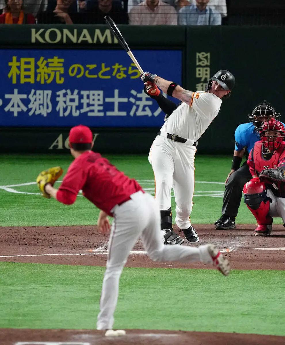 悩める助っ人が試合を決めた。巨人・キャベッジが0―0の8回1死で、好投していた山崎の代打で登場。カウント1―1から森下の147キロ直球を右翼席上段へ運んだ。5月28日以来、約1カ月ぶりの8号ソロに「真芯でちゃんとボールを捉えることができた」と胸を張った。