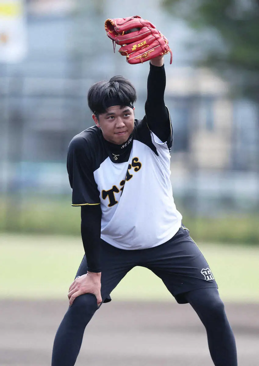<阪神投手指名練習> キャッチボールを行う才木(撮影・大森 寛明)