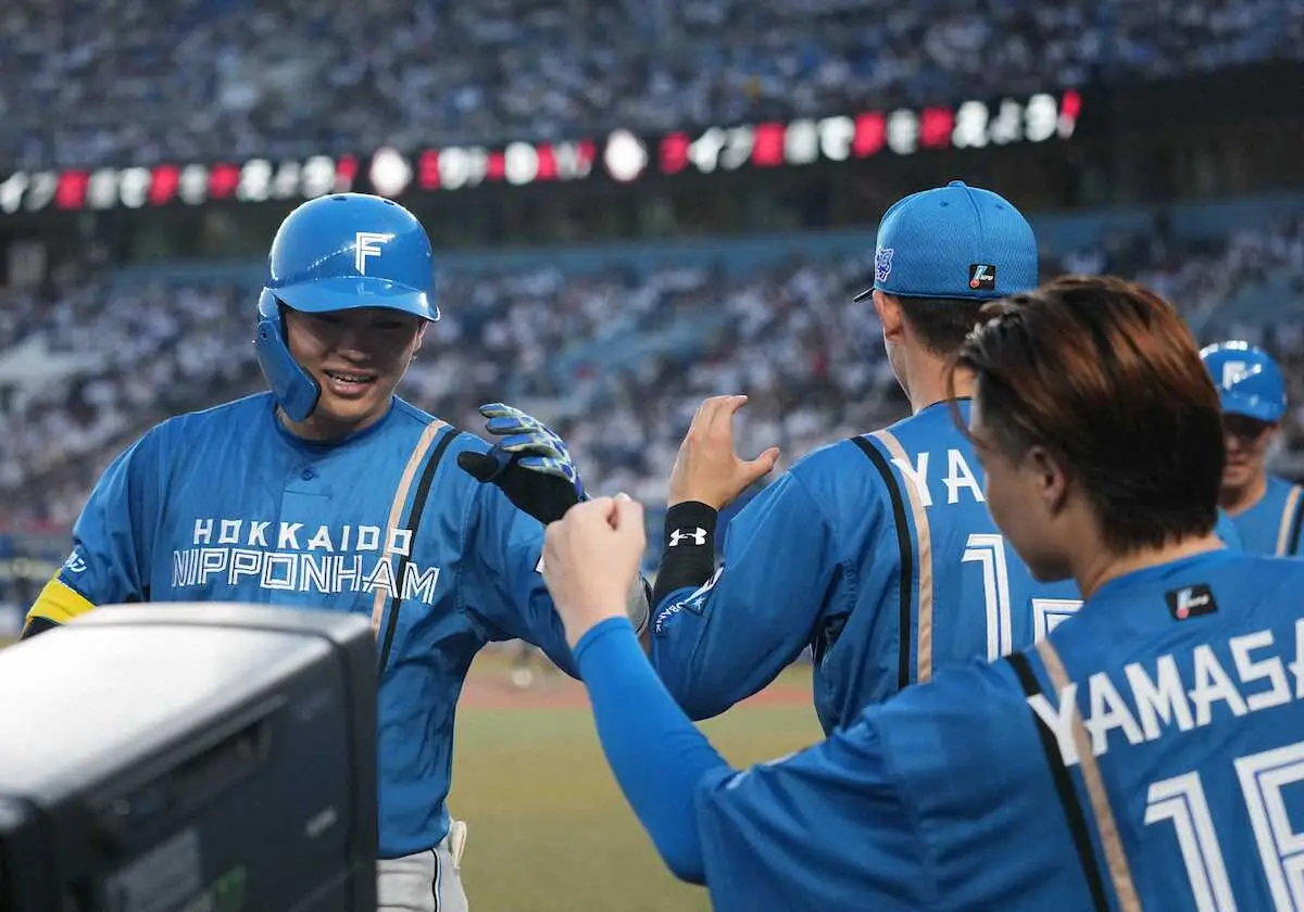 <ロ・日(12)>初回無死満塁、レイエスは右越えに先制のグランドスラム。新庄監督に迎えられる(撮影・長久保 豊) Photo by スポニチ 止まらん!新庄日本ハム 今季最多13得点で5連勝 貯金最多16 山﨑1失点… ギャラリーで見る この記事のフォト 2025年07月09日の画像一覧 もっと見る 2025年07月09日の画像をもっと見る