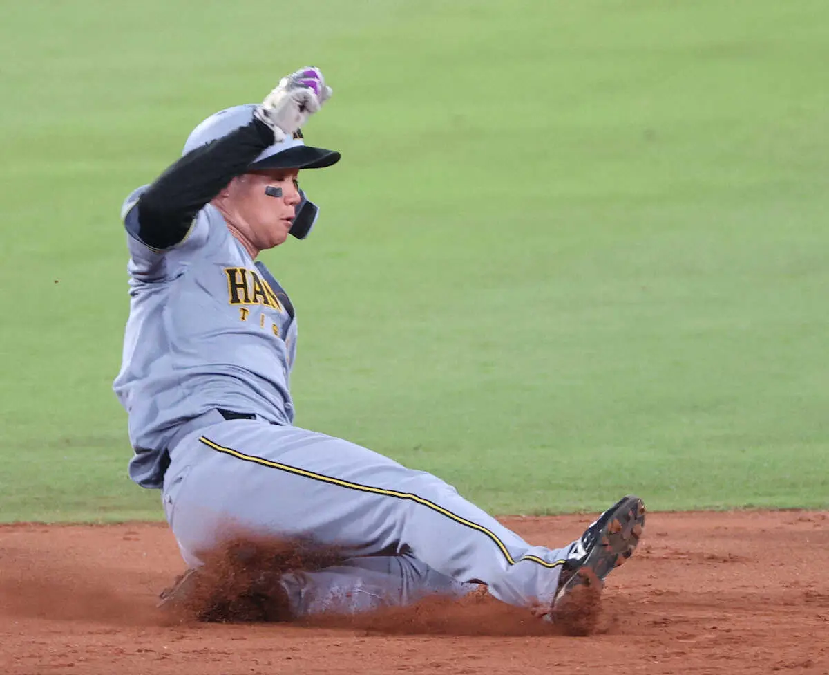直後、佐藤輝はいきなり3ボールとなり、四球も頭に浮かんだろうか。金本知憲が現役時代「勝負か、敬遠ぎみか、分からん時が困った」と話していた。結局は勝負で、フルカウントから先発左腕・床田寛樹のカッターをたたき、前進の二遊間をゴロで破った。中前へ先制の2点打となった。