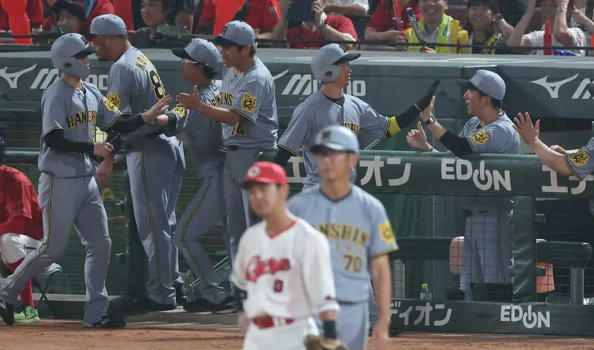 プロ野球のセ・リーグは10日に1試合が行われ、阪神が敵地・マツダで広島に逆転勝利を飾り11連勝。広島は借金生活に突入(37勝38敗4分け、勝率.493)し、この日試合がなかった巨人(39勝40敗3分け、勝率.494)を勝率で下回り3位に転落した。