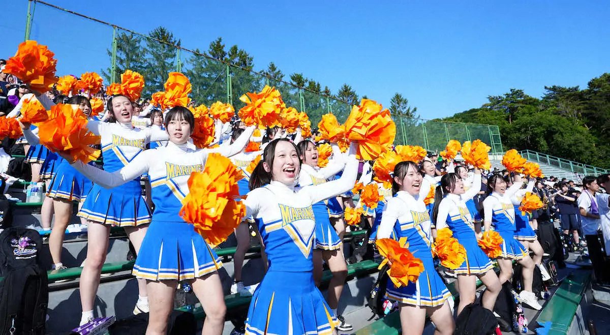全校応援の中、チアリーディング部の42人が華を添えた。8月末に全国大会を控えているが、副部長の中村柚来さん(3年)は「野球は見ていて楽しい。応援しがいがあります」と、キレのある動きと笑顔でスタンドを盛り上げた。