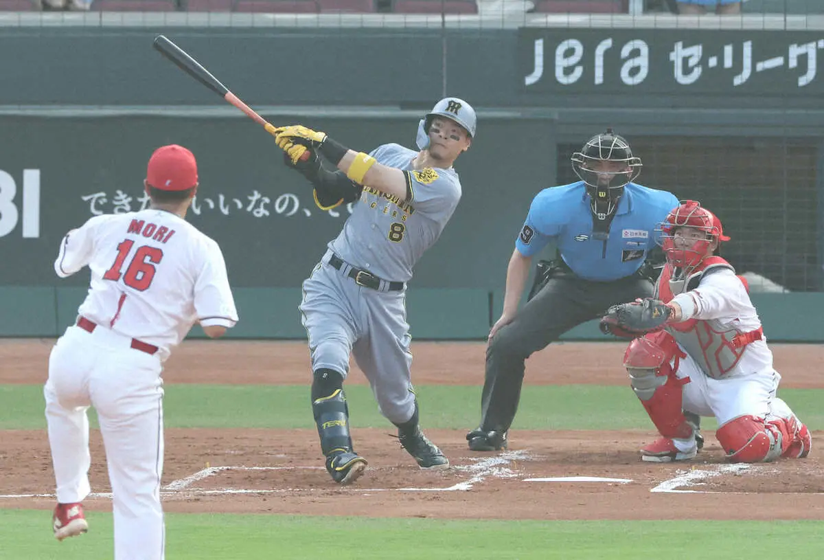阪神・佐藤輝明内野手(26)が、広島戦の2回に右翼席へ23号先制ソロを放った。前日9日の同戦に続く2試合連発。6日DeNA戦(横浜)から、4試合続けて第1打席で打点を挙げ、今季59打点目となった。