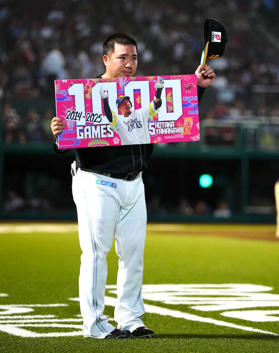 ソフトバンクの山川穂高内野手(33)が11日、楽天戦に「6番・一塁」で先発出場。通算1000試合出場を達成した。