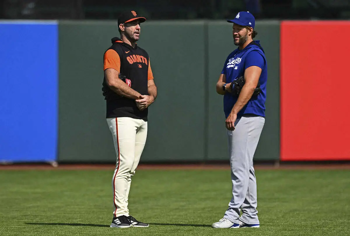 2日のホワイトソックス戦でMLB史上20人目となる通算3000奪三振を達成したドジャースの216勝左腕カーショーと、現役最多262勝、3483三振を誇るジャイアンツのバーランダーが試合前のグランド上で談笑する場面があった。
