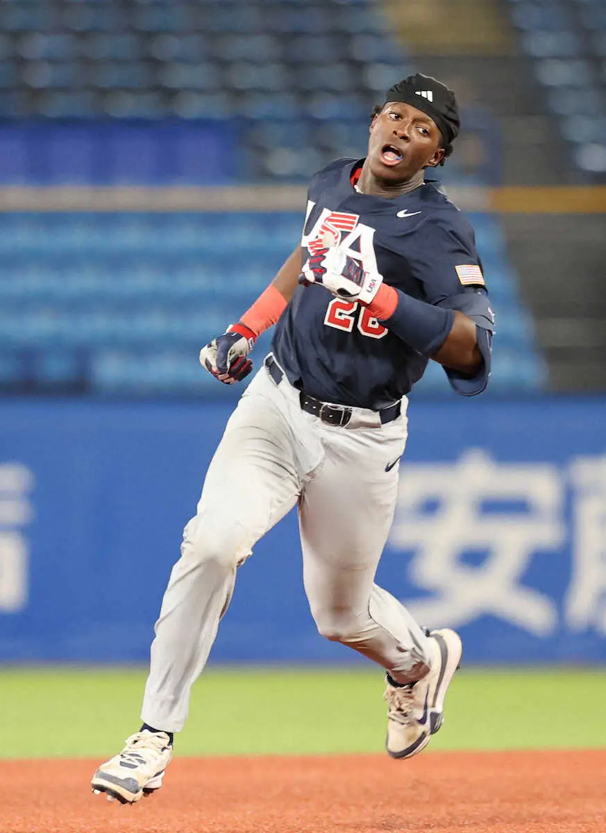 【日米大学野球】米国正捕手・ラッキーがランニングHR ヘルメット脱ぎ捨て激走弾