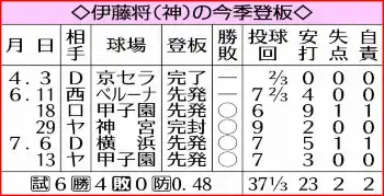 抜群の安定感は、この夜も健在だった。相手打線に三塁すら踏ませない。阪神・伊藤将が開幕から無傷の4連勝。うち3度が日曜日で、虎党にまたしても最高の週末を届けた。