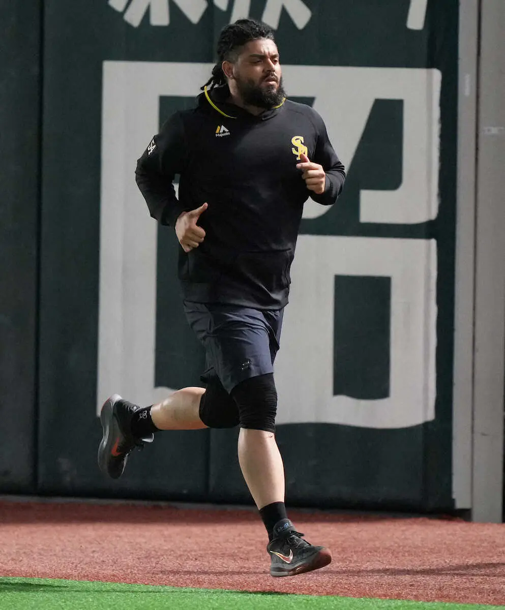 戦線離脱中のソフトバンク・オスナがみずほペイペイドームでランニングなどで汗を流した。