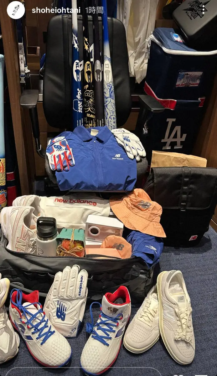 ロッカーはドジャースで同僚のスミスの隣。ロッカー前にバットやスパイクなどを奇麗に並べ、球宴仕様の道具一式を公開した。バットは普段試合で使用すると思われる黒一色の1本に加え、その他3本は球宴仕様にデザインされた派手なタイプのバットも。その中で右側の1本は投げる姿と打つ姿がデザインされた、青と白のドジャースカラーの二刀流デザインのバットもあった。