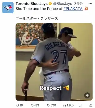 オールスター戦の1回、中前打で出塁したドジャース・大谷。一塁手ブルージェイズのゲレロ=アトランタ(共同) Photo by 共同 「ホント大谷さん好きだよねー」ゲレロが大谷翔平を発見→帽子取り深々お辞… ギャラリーで見る この記事のフォト 2025年07月17日の画像一覧 もっと見る 2025年07月17日の画像をもっと見る