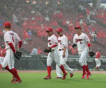 <広・D(14)>6回、途中で降雨コールドを宣告する審判(撮影・岸 良祐) Photo by スポニチ 雨には勝てず 中断時間2時間21分 マツダ降雨コールド 広島DeNA戦 川口… 2025年07月17日の画像一覧 もっと見る 2025年07月17日の画像をもっと見る
