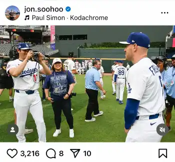 ドジャースの球団カメラマンを務めるジョン・スーフー氏が16日(日本時間17日)、自身のインスタグラムを更新。大谷翔平投手(31)とフレディ・フリーマン内野手(35)のほっこりする瞬間を投稿した。