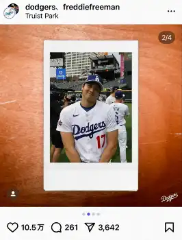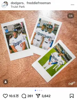 フリーマンは両手を前で組み“すまし顔”で大谷のカメラに納まり、大谷は首を少し傾け、おどけた表情でフリーマンからの撮影に臨んだ。最後は仲良く2人並んで笑顔で2ショットの写真も投稿された。
