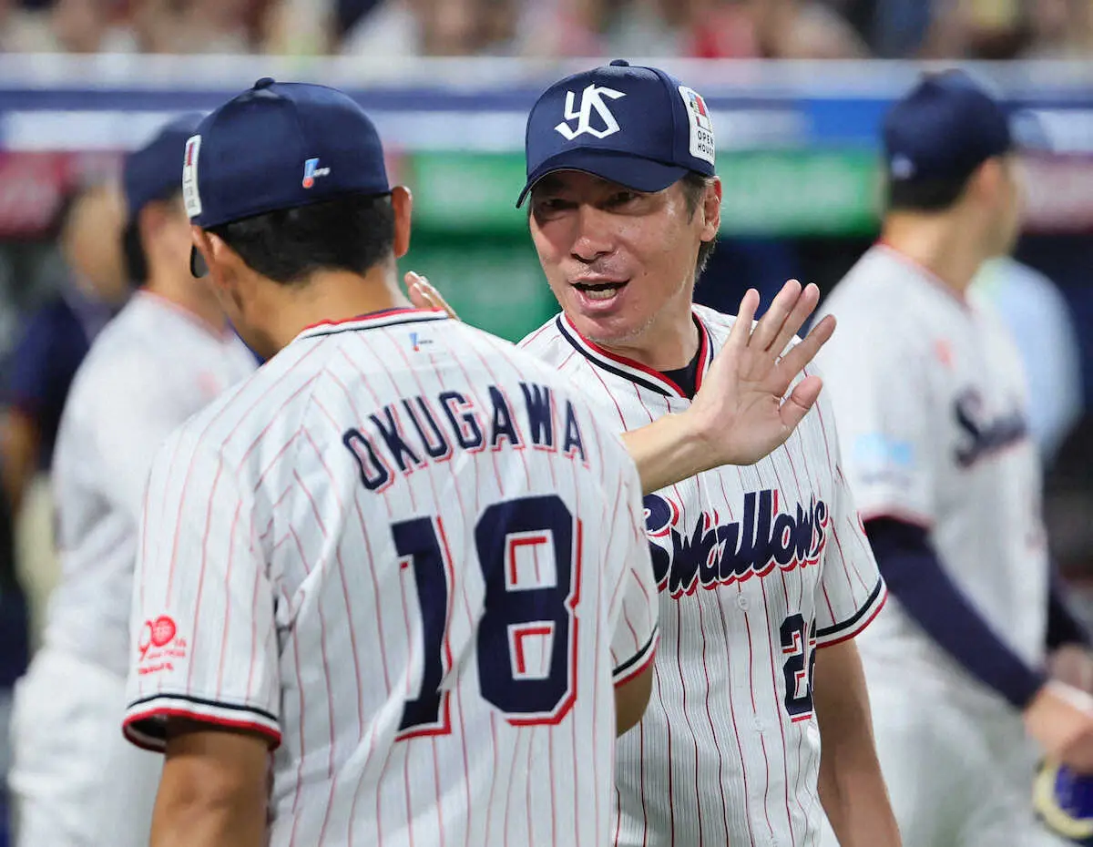 高津監督は待ち望んだ1勝を挙げた奥川について、開口一番「いやあ、よかったね」と笑顔。「今日は彼のピッチングでゲームをつくって、勝利投手にふさわしいピッチングだったと思います」と称えた。