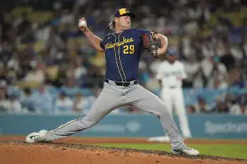 9回に登板したブルワーズ守護神メギル(右)はドジャース打線を封じ、コントレラスと握手(ロイター) ブルワーズ8連勝!守護神メギルが「大ファン」大谷翔平を左飛→22セーブ目… ギャラリーで見る この記事のフォト 2025年07月19日の画像一覧 もっと見る 2025年07月19日の画像をもっと見る