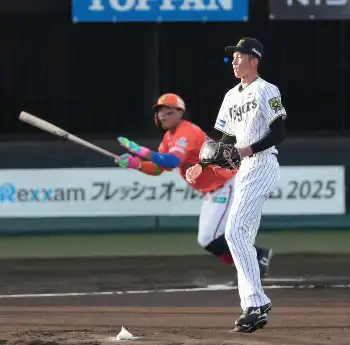 <全ウ・全イ>初回、知念(左)に先制2ランを浴びた今朝丸(撮影・中辻 颯太) Photo by スポニチ 阪神・今朝丸裕喜がウエスタン選抜として1回を2失点「良い勉強になった」 ギャラリーで見る この記事のフォト 2025年07月20日の画像一覧 もっと見る 2025年07月20日の画像をもっと見る