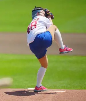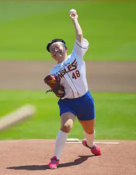 一方でダイナミックなフォームについて振られると「野茂英雄推しなので、トルネード投法にしました。顔とお尻の大きさは負けていません。野茂と同じサイズだと思っています」と話して報道陣を爆笑させた。