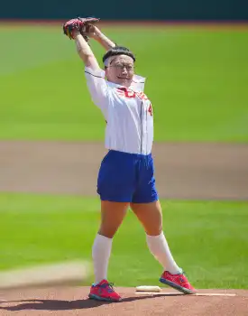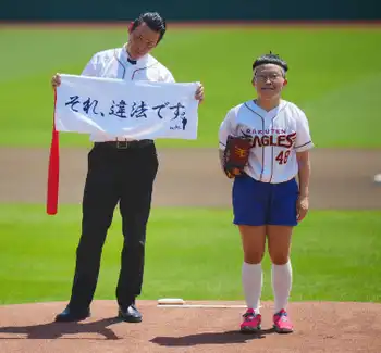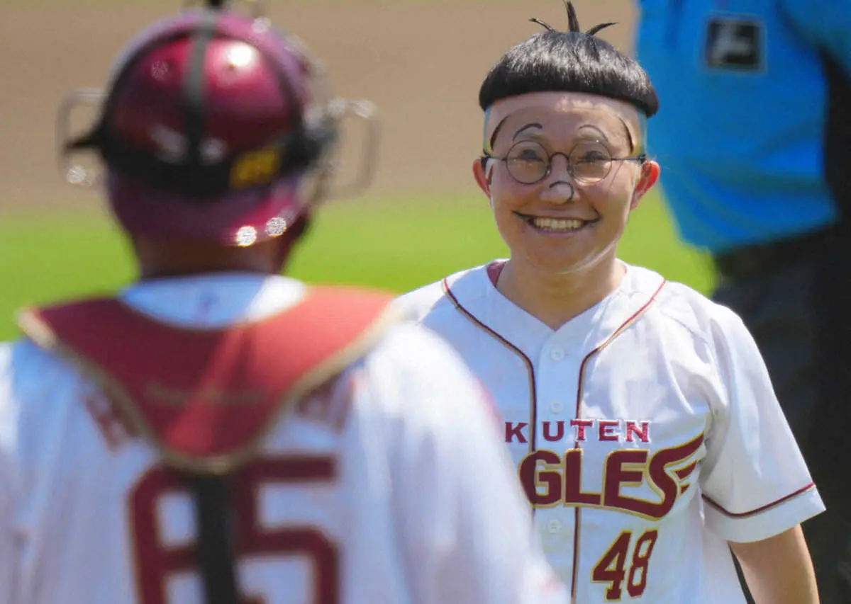 お笑い芸人のキンタロー。がサザエさんの中島に扮して始球式も打者の背後を通過 「磯野と練習したのに…」