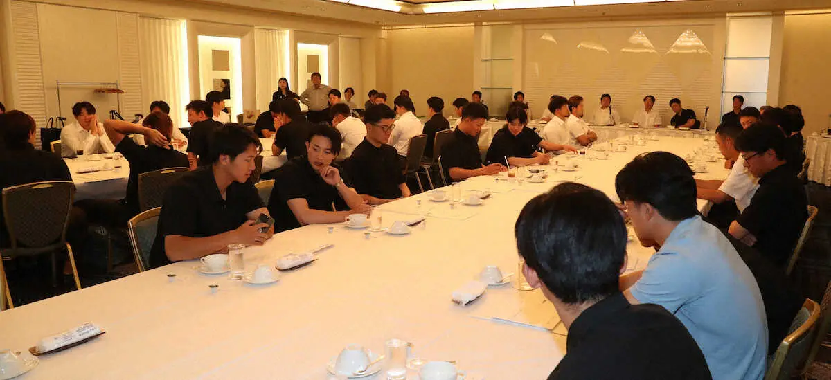 <プロ野球選手会>プロ野球選手会臨時総会に臨む(右から)会長の広島・会沢、巨人・丸、広島・大瀬良、阪神・大山 (撮影・奥 調) Photo by スポニチ プロ野球選手会 1軍球団数拡大を協議 会沢翼選手会長「1軍も含めてやっ… ギャラリーで見る この記事のフォト 2025年07月23日の画像一覧 もっと見る 2025年07月23日の画像をもっと見る