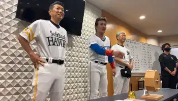 そこで、キッチリと4番を引き当てたのが自軍の主砲・レイエス。決定の瞬間、新庄監督と大笑いし「楽しかった。打順をガラポンで決めるのは人生で初めて。4番を引いて、チームから拍手をいただきました。残り2個で、4番か下位打線という状況だった」と明かした。