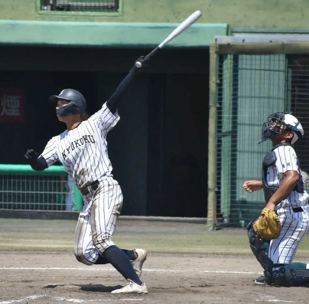 詰まりながらもバックスクリーン右へ運んだ。1点リードの4回だ。九州国際大付の牟礼が1死一、二塁で八女学院の左腕・石飛太基のスライダーを振り抜く。今夏2本目は貴重な3ランになり「今までのホームランでベスト3に入る」と確かな感触が残った。