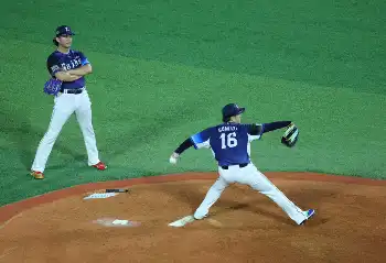 2回2死二、三塁、2番手・西武の隅田にバトンタッチ。降板にもかかわらず、マウンドの後方で腕を組んで仁王立ちする今井。“投手コーチ”を演じ、球宴を盛り上げていた。