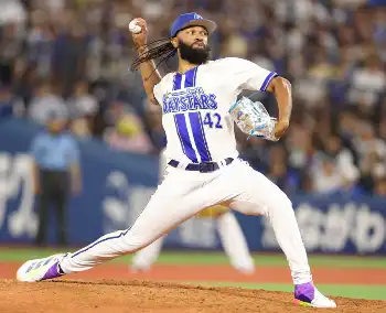 今季16試合に先発登板し、8勝を挙げているジャクソンはこの日、7番手として8回のマウンドに立った。代打・野村勇を遊ゴロ、万波を一ゴロと簡単に2死を奪うと、最後は村林を投ゴロ。わずか7球の完璧な救援を披露した。