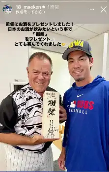 カブス傘下3Aアイオワの前田健太投手(37)が24日(日本時間25日)、自身のインスタグラムのストーリーズを更新。監督に似顔絵付の日本酒をプレゼントしたと報告した。