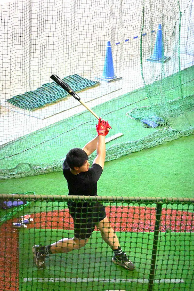 久しぶりの感触を確かめるようにスイングを繰り返した。5月6日の阪神戦の一塁守備で打者走者と交錯して左腕を負傷。全治3カ月程度と見込まれる中、ノックやベースランニングと徐々に段階を上げ、痛めた左腕を使った打撃練習ができるまで回復した。力強く広角に打ち分け「距離感とか感覚的にはズレはあるけれど、時間がない。オフシーズンではないので」と早期復帰を見据えた。