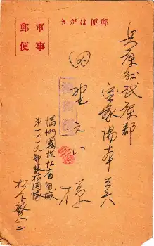 発信地は「満州国浜江省阿城」とある。ハルビンに近く、今の中国黒竜江省の南部である。所属は「一二一九部隊松岡隊」だった。