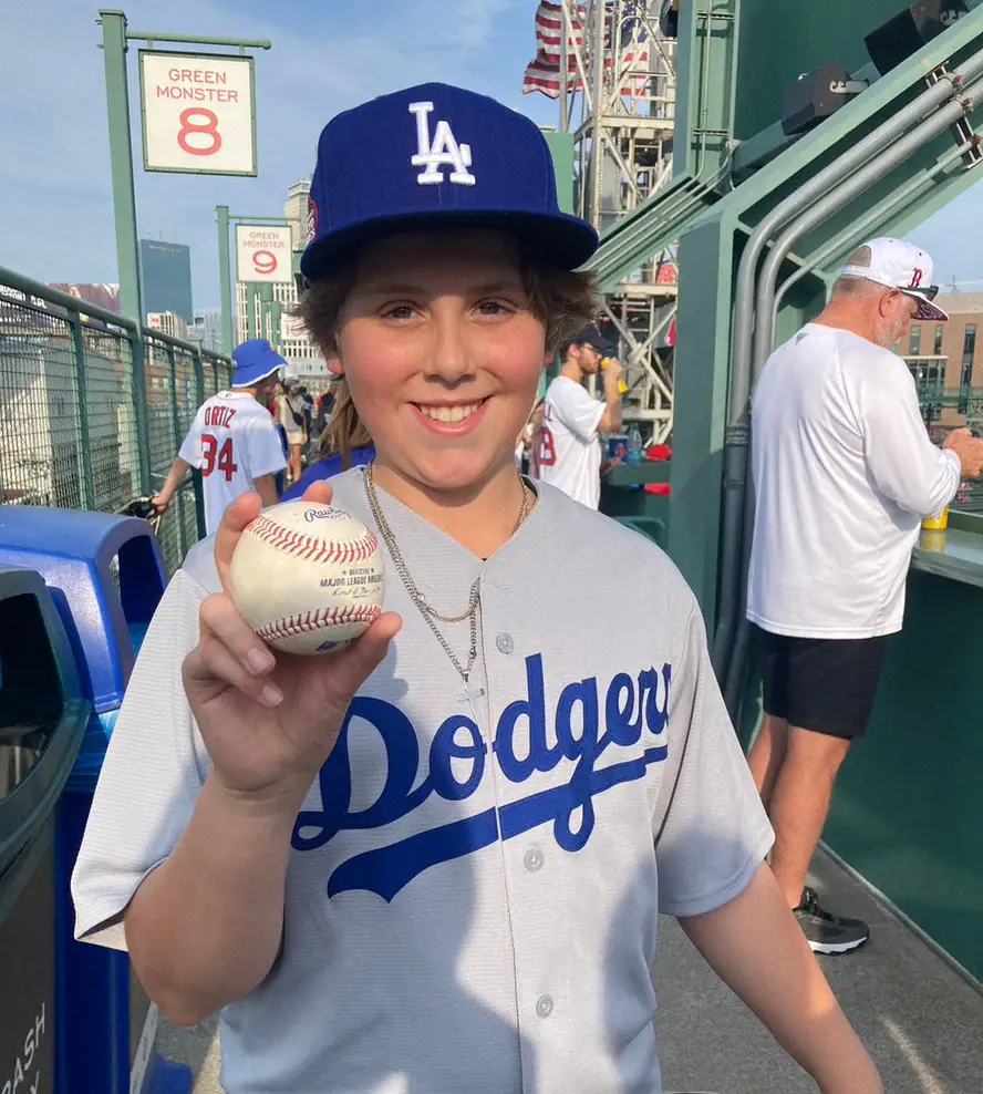 大谷は試合前に約15分間のキャッチボール。最大40メートルほどまで伸ばして調整した後、使用していたボールをグリーンモンスターで観戦していたインディアナ州在住のドジャースファン、ベック・バーンズくん(14)にプレゼントする粋なサプライズを行った。