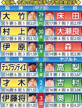 阪神・先発マッチアップ 鯉キラー大竹から1週間スタート 29日は勝てばマジック点灯も