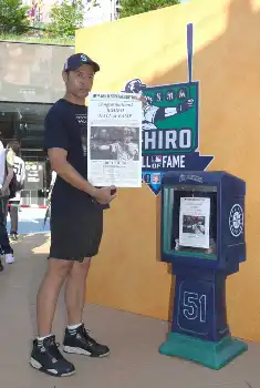 MLB 東京、愛知、神戸でイチロー氏特別号外配布 ニッチローも列に並ぶ