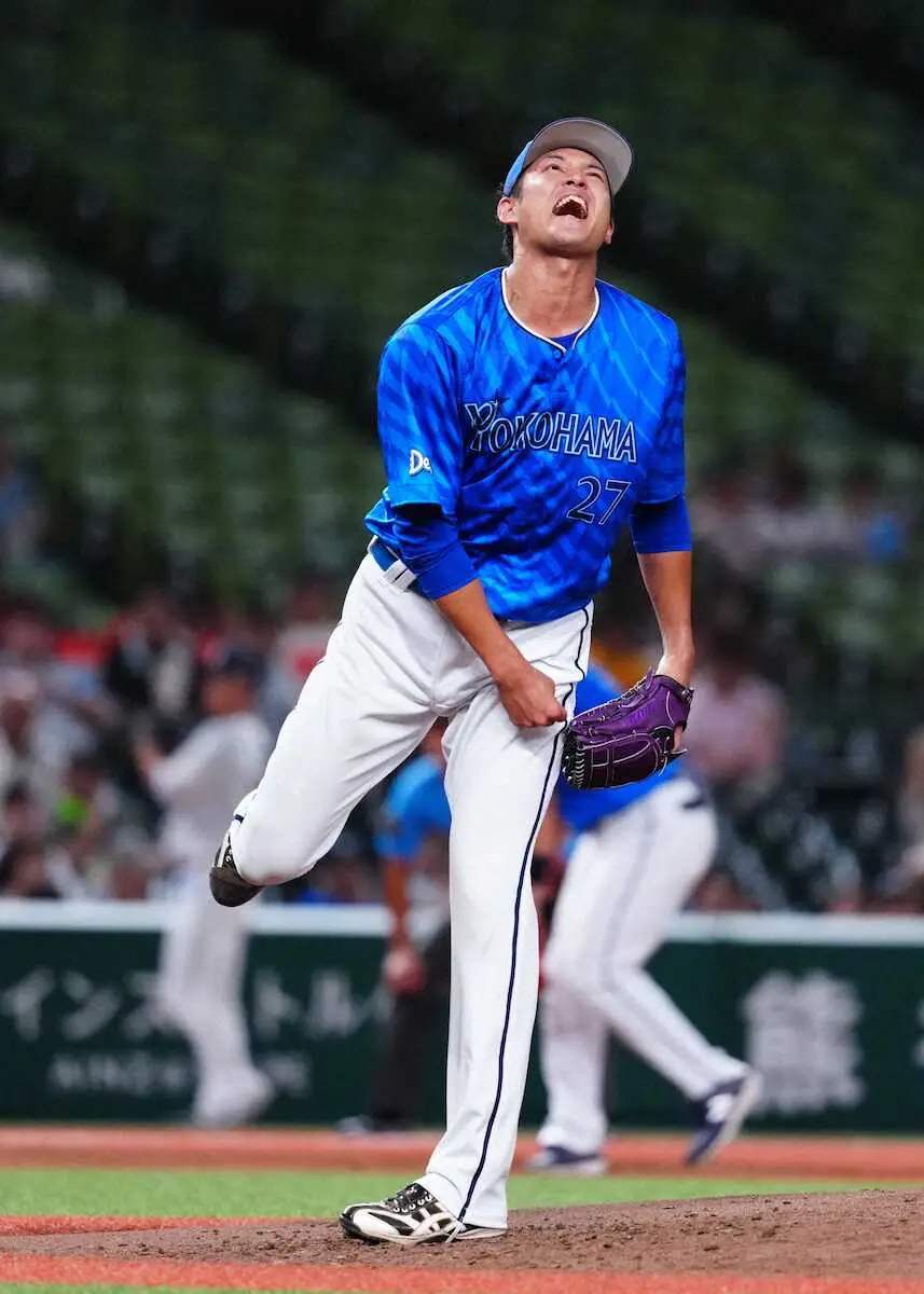 イースタン・リーグ<西・D>変化球が抜け、悔しそうな表情のDeNAの先発・藤浪(撮影・木村 揚輔)