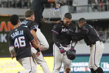 マーリンズは本拠でのヤンキース戦で5回表を終えて0―6と大量リードを許したが、その裏に4点を返すと、4―9とされた7回には6得点して逆転した。8回に1失点して同点とされ、9回は2失点して再びリードを奪われたが、9回1死一、二塁から1番エドワーズの適時打に敵失も絡み、同点。なおも1死三塁から2番ラミレスの捕手へのゴロが相手捕手の野選を誘い、13―12で劇的なサヨナラ勝利を収めた。
