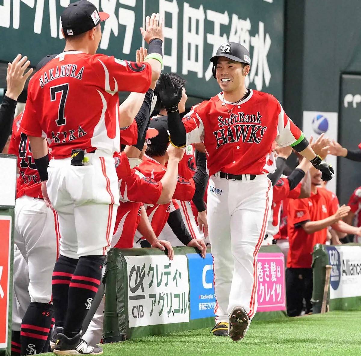 チームは2連勝で貯金は今季最多21。首位をがっちりと守り、2位・日本ハムに1ゲーム差をつけた。今季2戦2敗だった滝中の攻略に成功し、小久保監督は「前回(滝中との対戦で)近藤は出てなかったのでさすがだなと。まずは完封負けの次の目標は1点を取ることだった。相手投手に対しての先制2ランは本当に大きかった」と満足顔だ。近藤は「前半戦は若い子たちに助けてもらった。あとはアグーさん(山川)や僕らが意地で打たないと優勝には近づかない」と力強く言った。(井上 満夫)