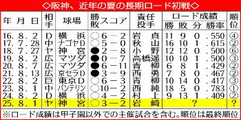 藤川監督も、主砲のひと振りを称賛した。「(しっかり)4番でやってくれている。本当に素晴らしい集中力。このロードの1試合目を取れたのは非常に大きい」。長期ロード初戦勝利は4年連続で、8月の幕開けを白星で飾るのも同じく4年連続。シーズン15度目の延長戦を制し、貯金は今季最多タイの22となった。2位・巨人とは今季最大12ゲーム差。極め付きは、優勝マジック「36」の再点灯だ。初点灯から既に3減。栄光へのカウントダウンが、神宮の杜から再開する。