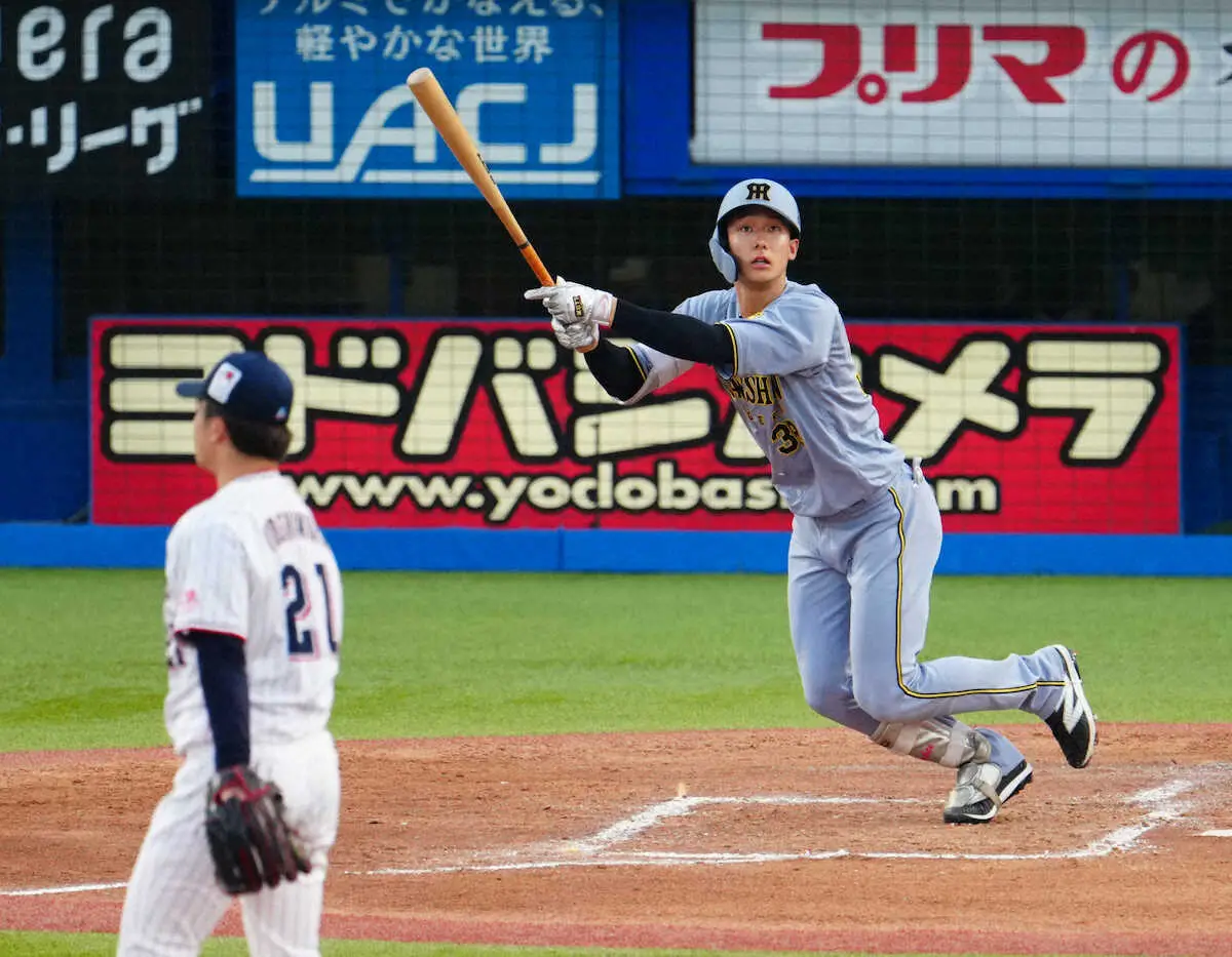 阪神・小幡竜平内野手が、ヤクルト戦の2回1死からバックスクリーン左へ先制の4号ソロを放った。ヤクルト先発・吉村が投じた147キロの直球を鋭くはじき返した。