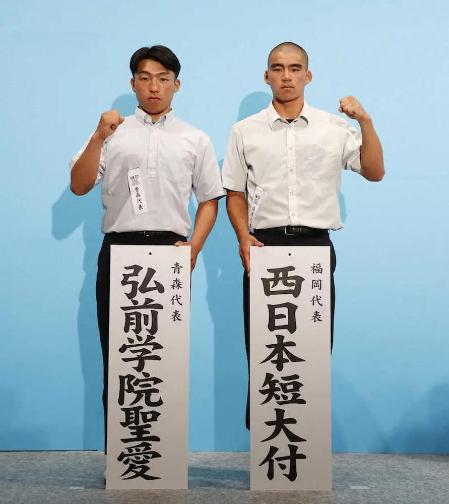 対戦が決まった弘前学院聖愛の田崎光太郎主将(左)と西日本短大付の小川耕平主将