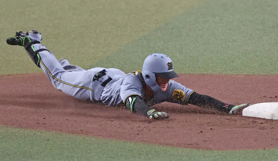 7回表も簡単に2死となった。投手・高橋の代打で出てきた高寺望夢が中堅左にライナーで落ちる安打を放った。一塁を蹴り、中堅・岡林勇希の体勢を見て、懸命に駆けて二塁のかなり手前からヘッドスライディングで飛びこんだのだ。